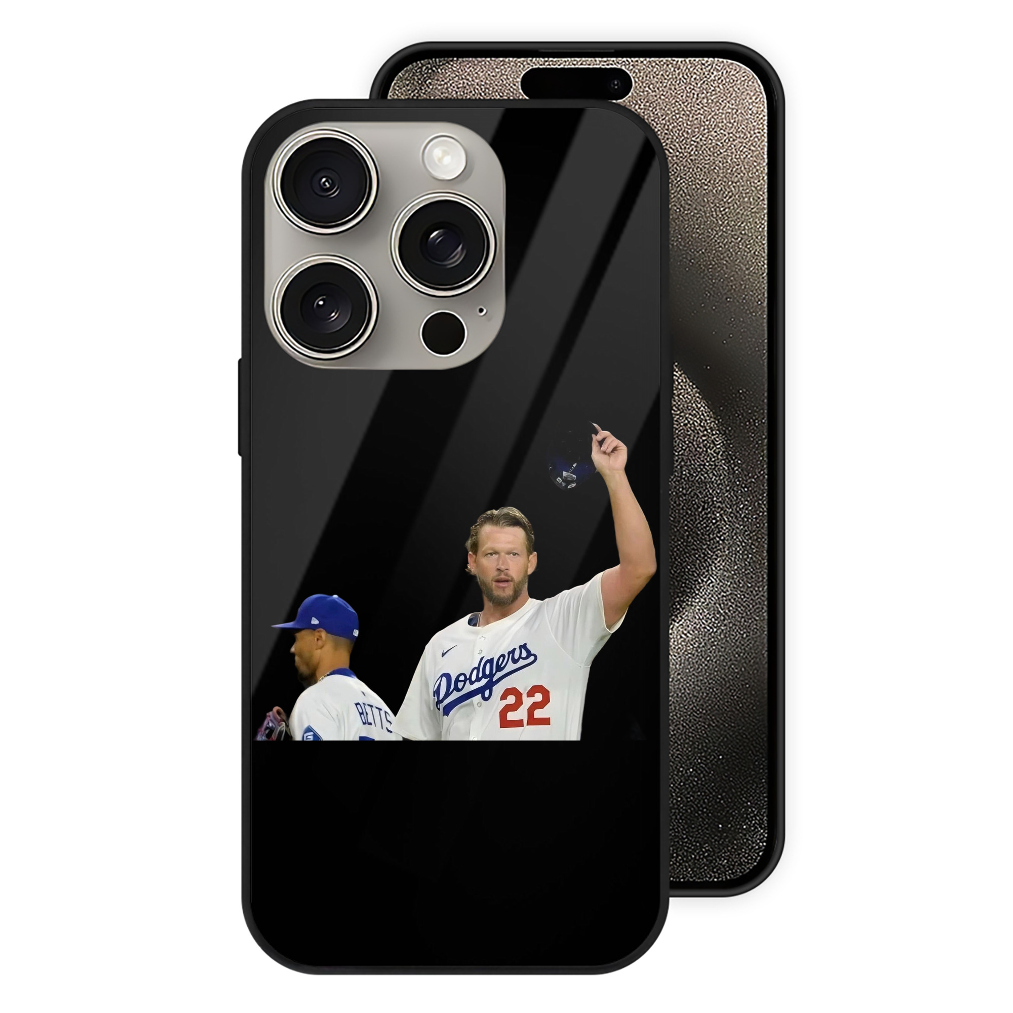 Clayton Kershaw 13 IPhone 15 Pro Mirror Phone Case – UV Printed Glass + TPU – Scratch-Resistant, Wireless Charging Compatible, Precise Fit & Stylish Design