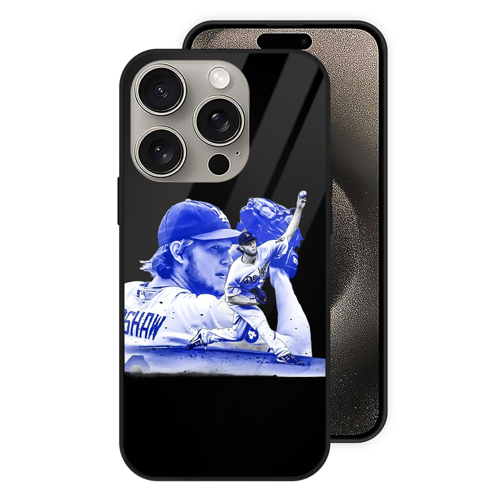 Clayton Kershaw 3 IPhone 15 Pro Mirror Phone Case – UV Printed Glass + TPU – Scratch-Resistant, Wireless Charging Compatible, Precise Fit & Stylish Design