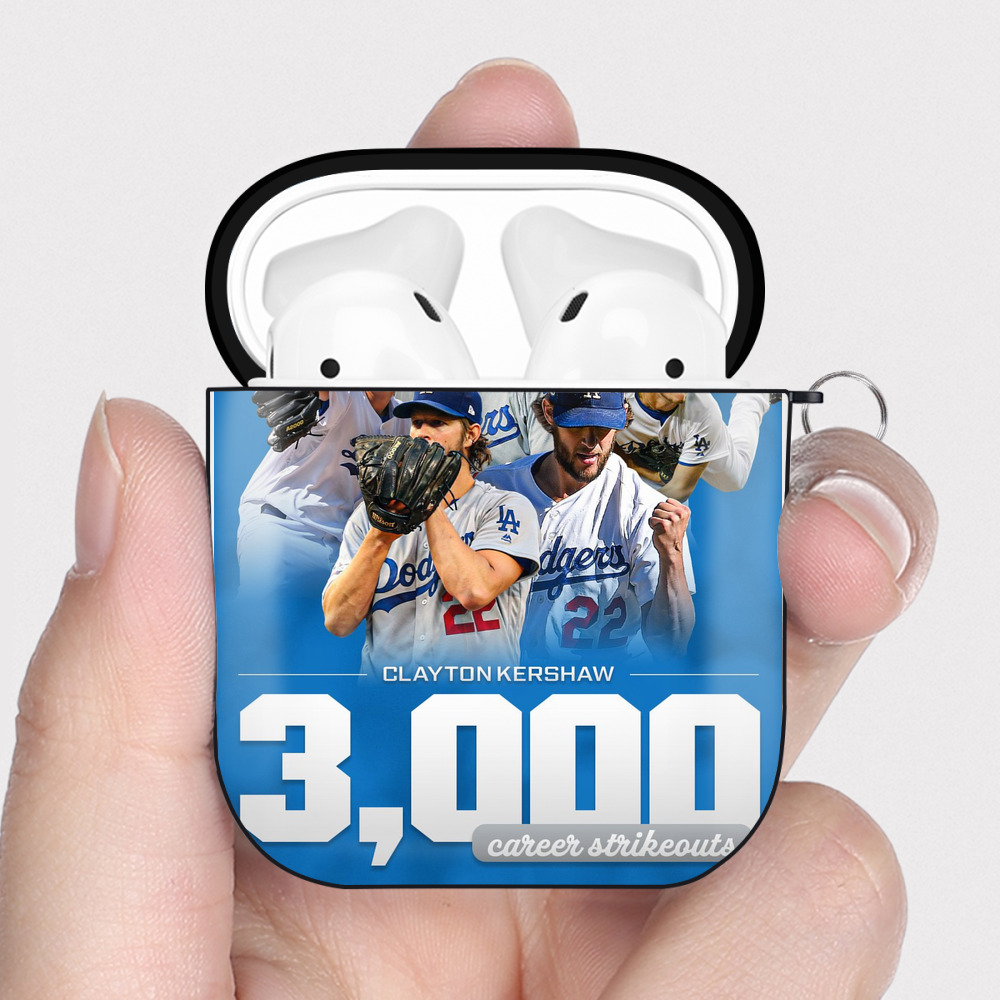 Clayton Kershaw 3K 12 AirPods 2 Case Hard Shell Black, Flexible PC Material, Precise Cutouts, Full Protection, Anti-Fingerprint, Washable, Includes Keychain – Durable & Slim Design