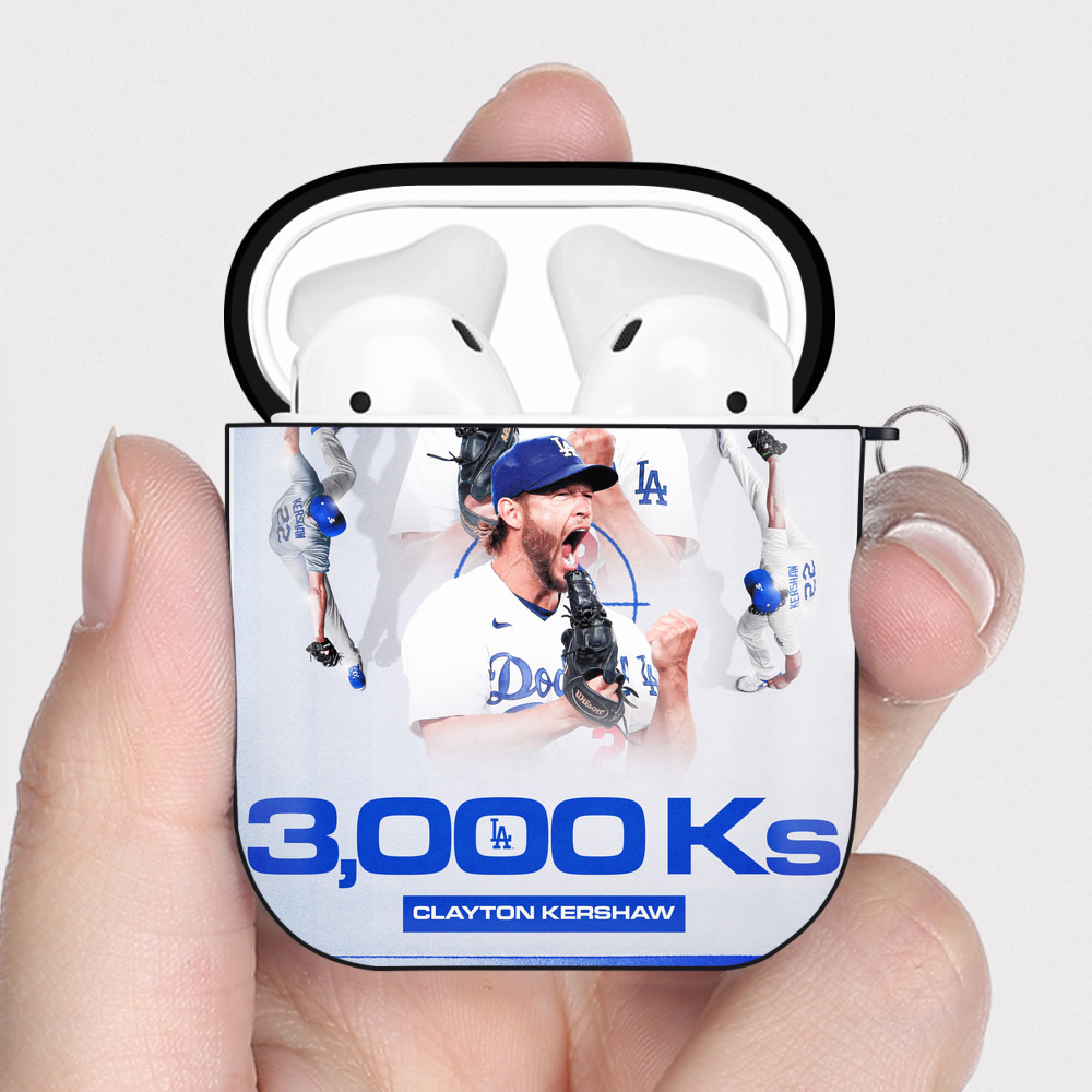 Clayton Kershaw 3K 19 AirPods 2 Case Hard Shell Black, Flexible PC Material, Precise Cutouts, Full Protection, Anti-Fingerprint, Washable, Includes Keychain – Durable & Slim Design