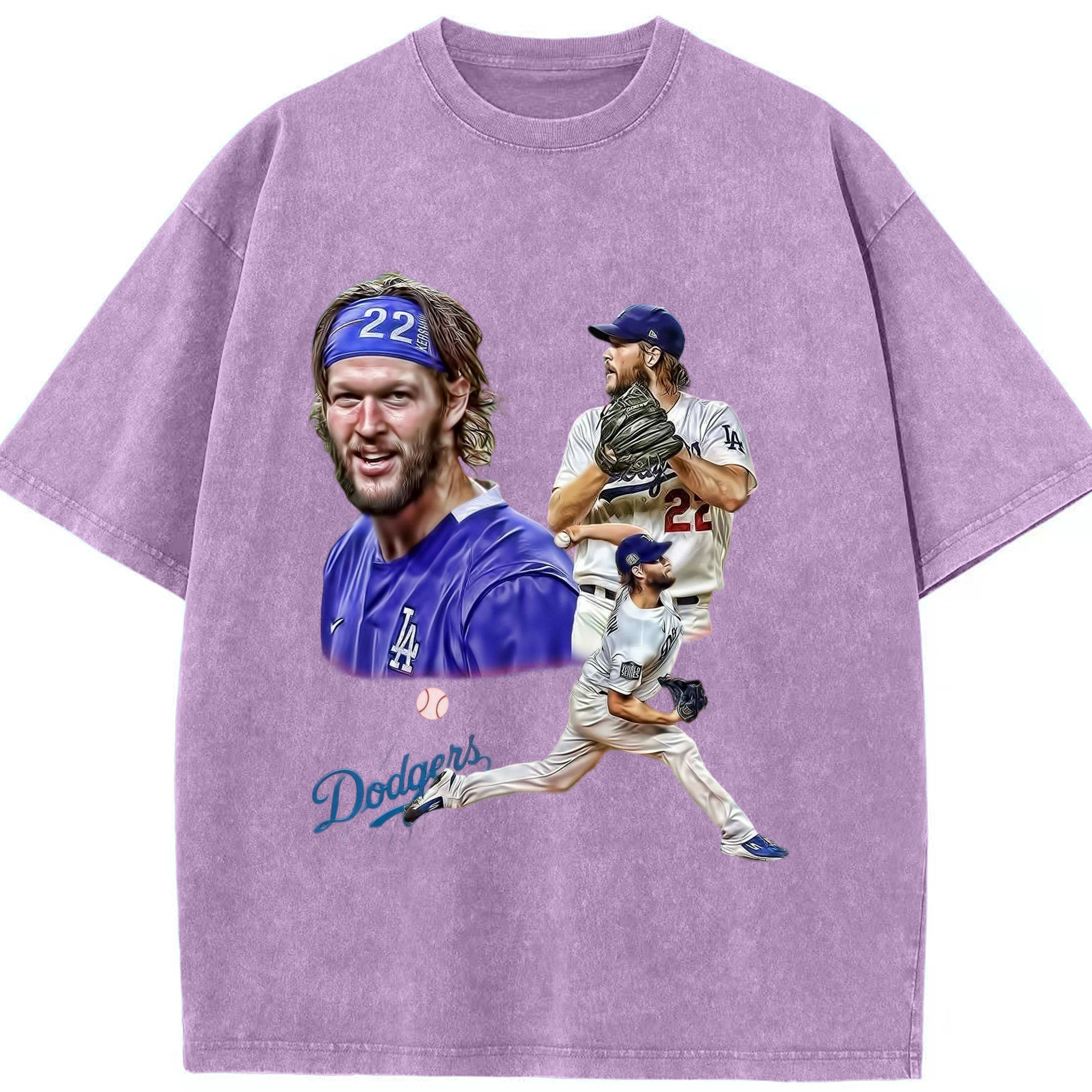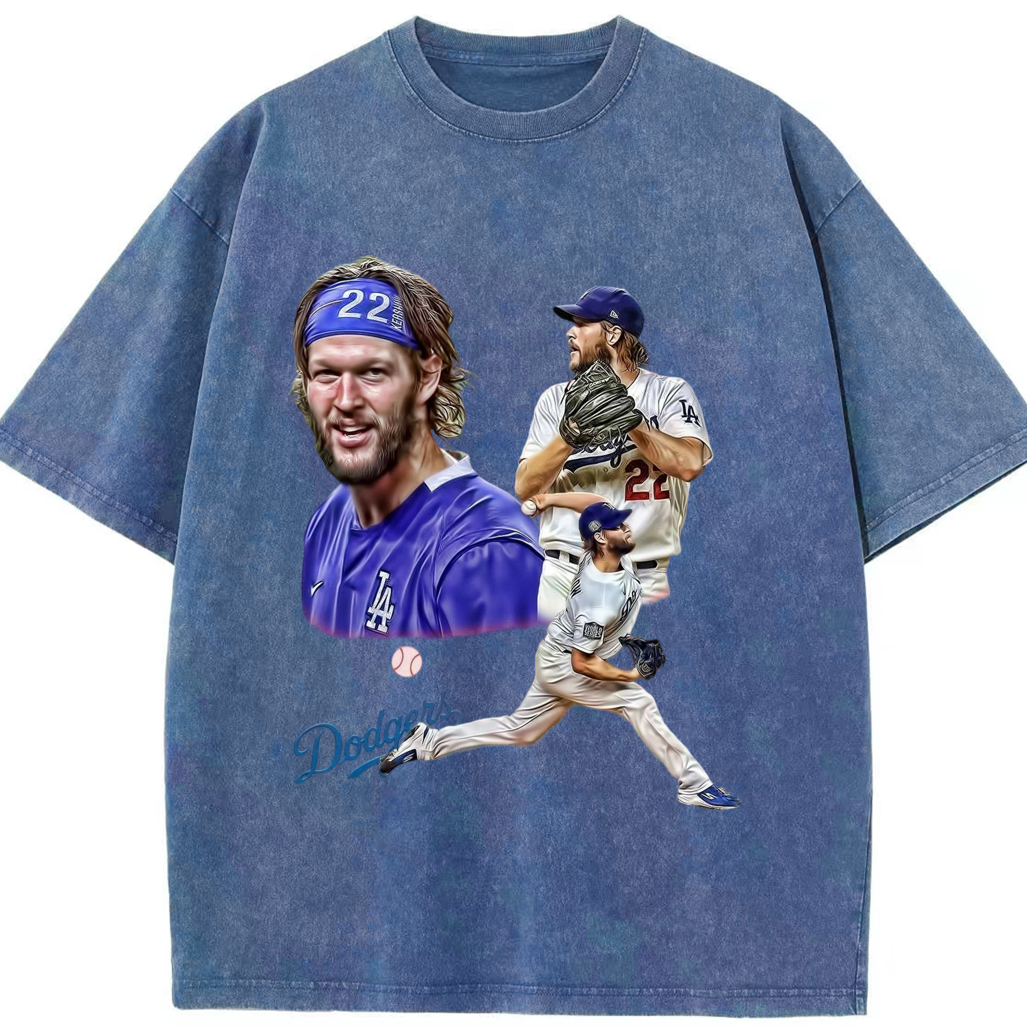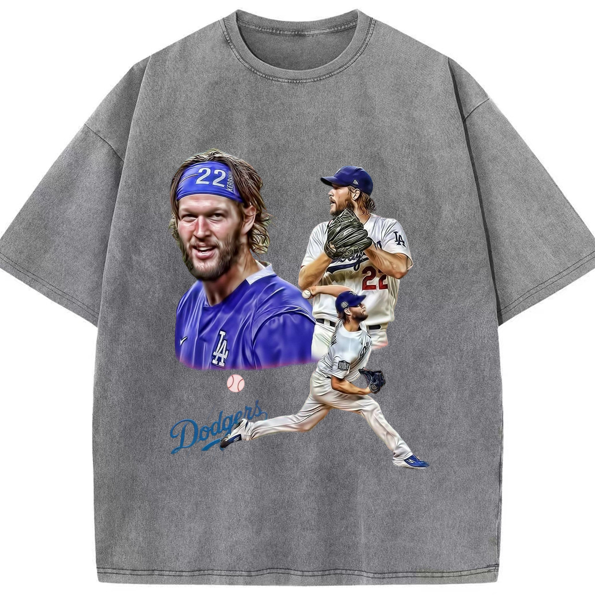 Clayton Kershaw 6 Washed Vintage Look 230g Cotton Oversized T-Shirt With Front Heat Transfer Print – Soft, Lightweight, Stylish Fit – Comfortable Casual Wear For Sports & Everyday Use