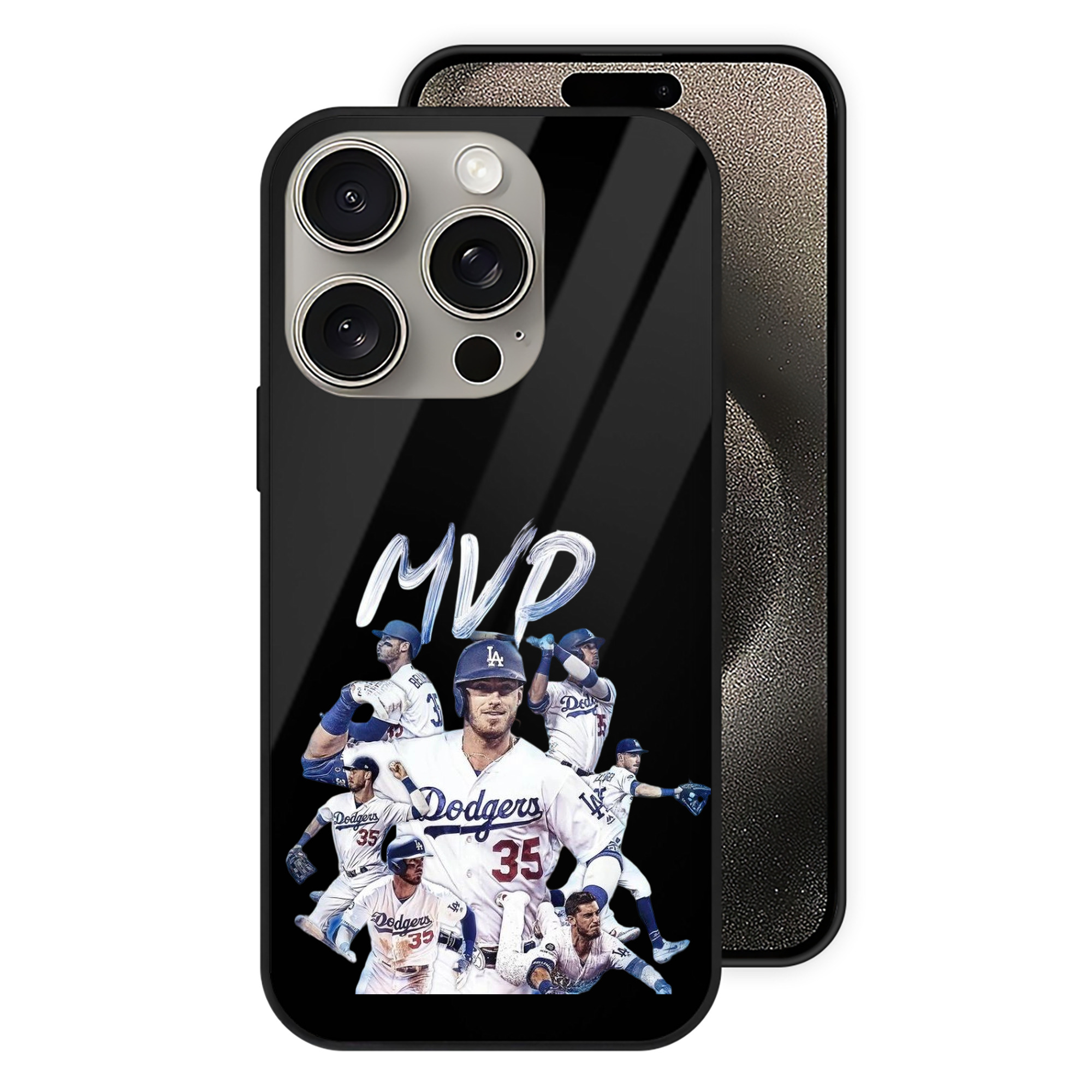 Cody Bellinger 4 IPhone 15 Pro Mirror Phone Case – UV Printed Glass + TPU – Scratch-Resistant, Wireless Charging Compatible, Precise Fit & Stylish Design