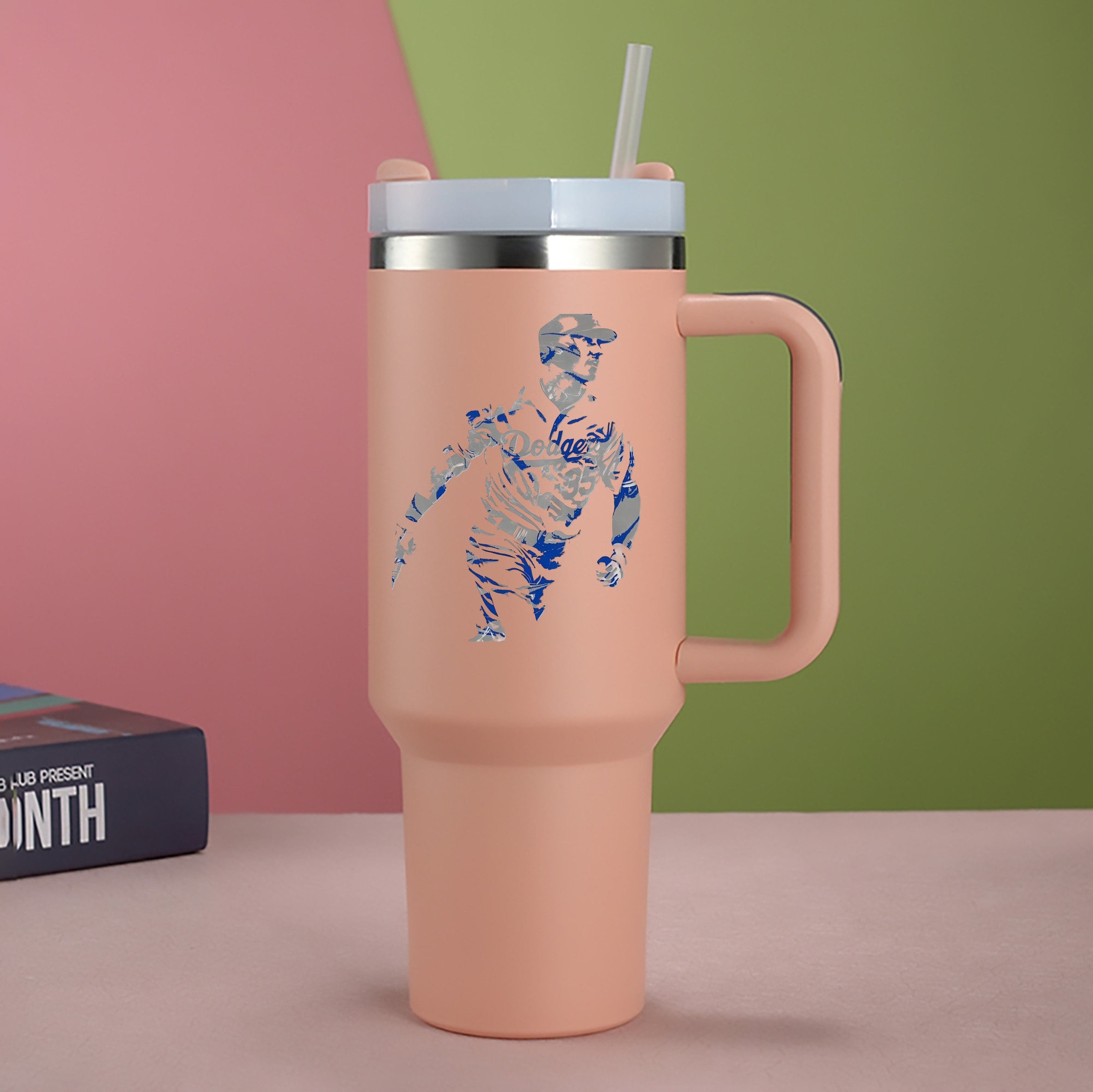 A generic imageCody Bellinger 5 40oz Handle Car Cup With Crystal Sticker Design – Durable Stainless Steel Travel Mug With Reusable Straw – Double Wall InsulatedCody Bellinger 5 40oz Handle Car Cup With Crystal Sticker Design – Durable Stainless Steel Travel Mug With Reusable Straw – Double Wall Insulated
